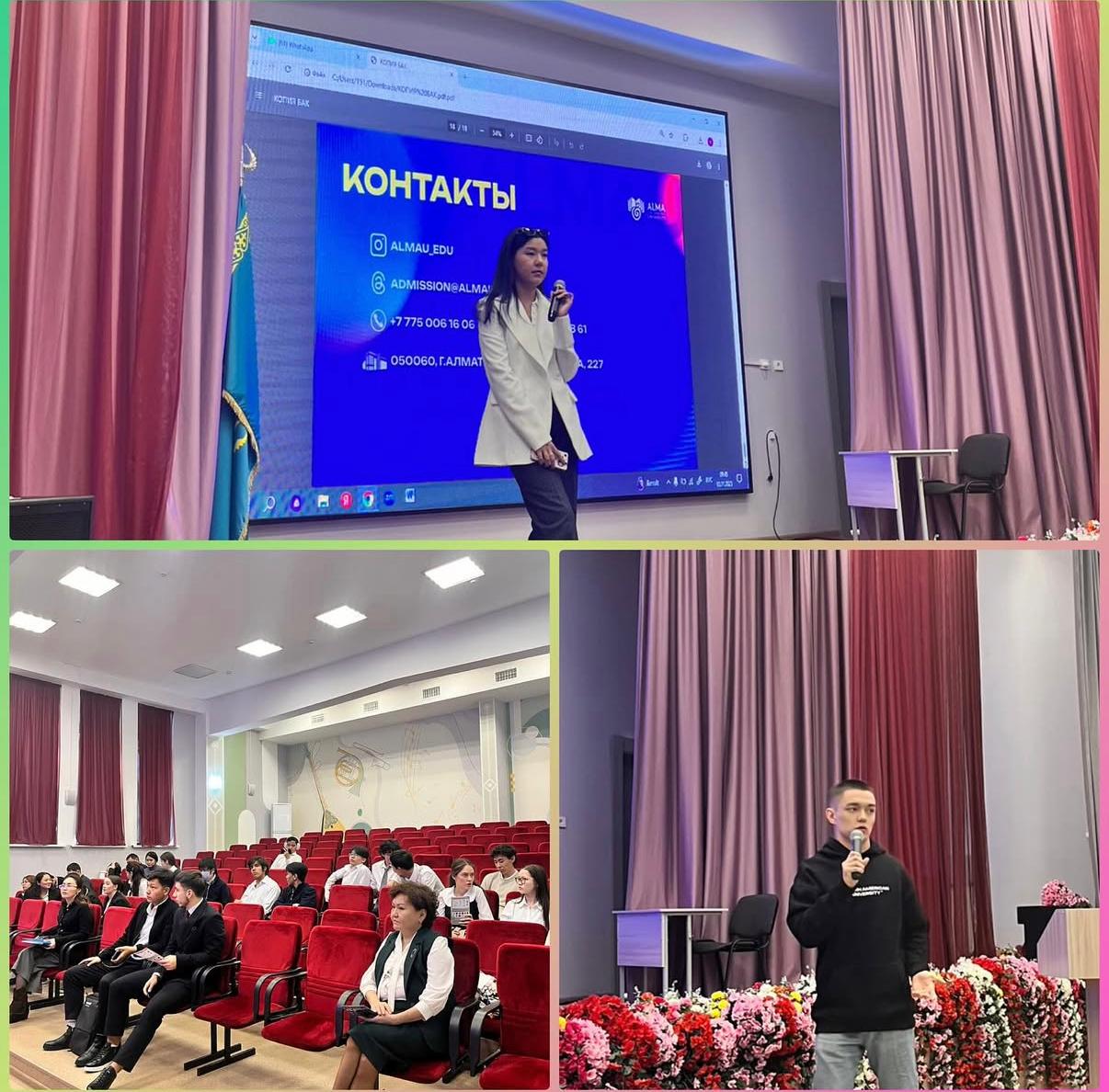 Алматы Менеджмент Университеті (AlmaU) мен Қазақ-Америка Университетінің (KAU) өкілдері 11-сынып оқушыларымен кездесіп, жоғары оқу орнына түсу процесі жөнінде құнды ақпараттармен бөлісті.