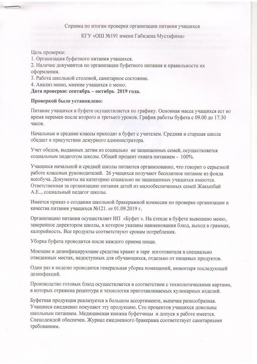 Справка по организации здорового питания.