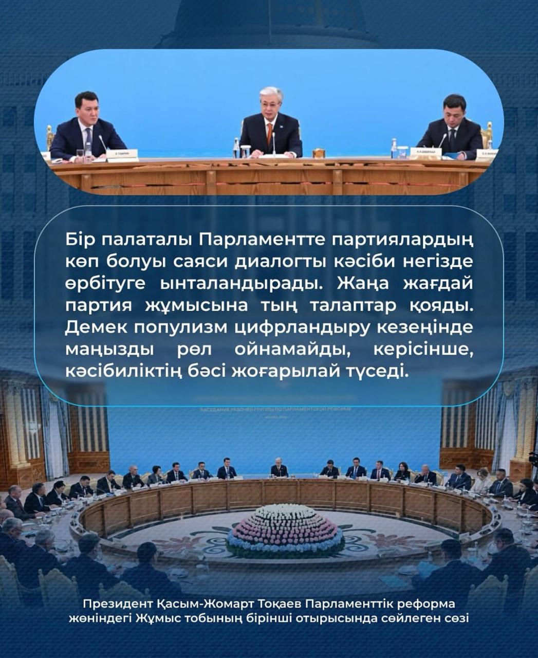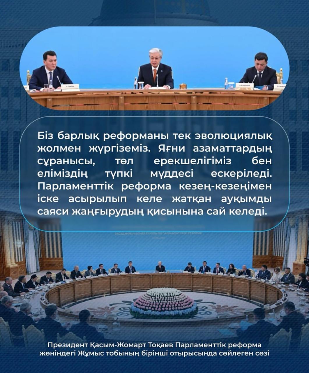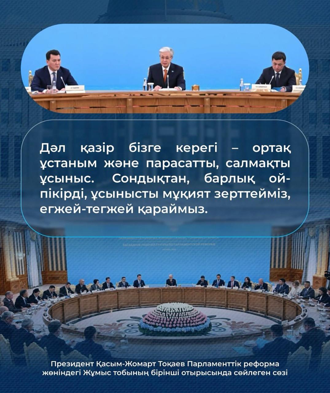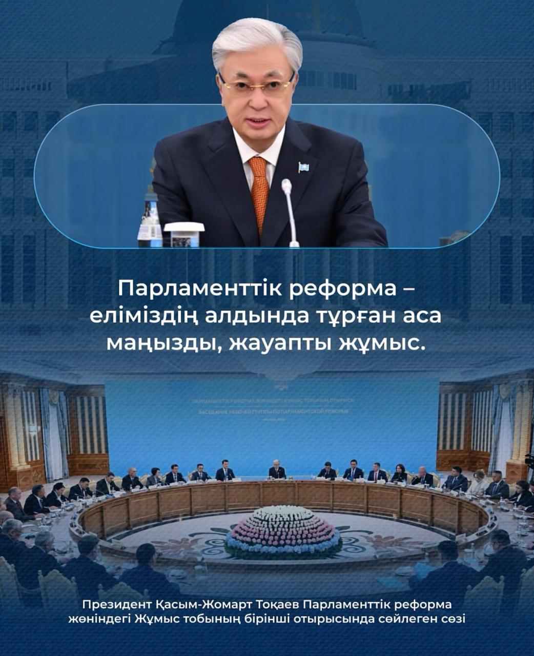 15 октябрь 2025 0 1 2 3 4 5 Президент Қ.К.Тоқаев Парламенттік реформа жөніндегі Жұмыс тобының бірінші отырысында сөйлеген сөзі