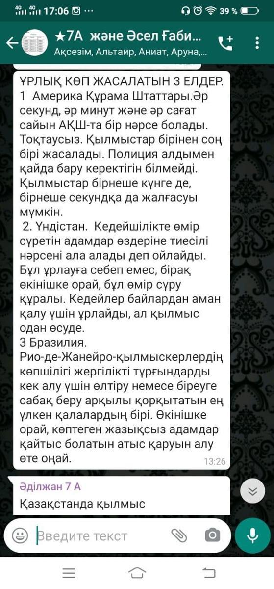 » "Ұрлық түбі-қорлық" сынып сағаты