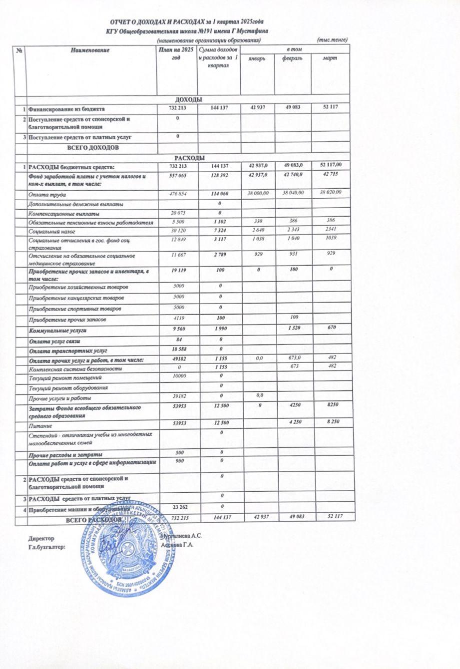 Отчет о доходах и расходах за 1 кв 2021 г.