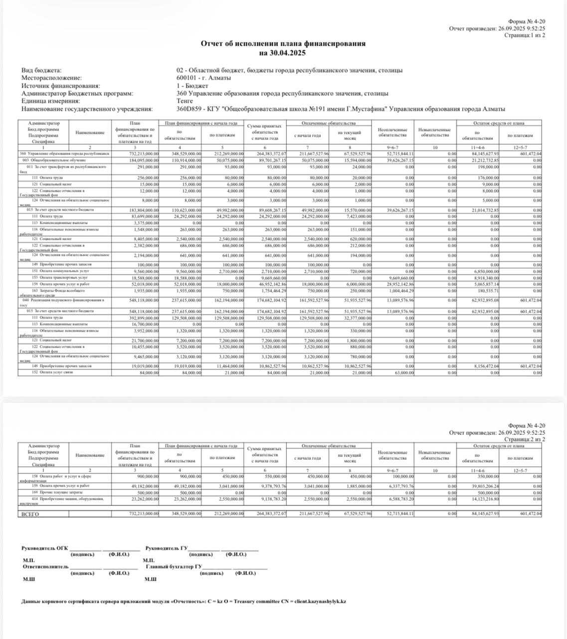 30 апрель 2025 0 1 2 3 4 5 Отчет об исполнении плана финансирования на 30.04.2025 Отчет об исполнении плана финансирования на 30.04.2025