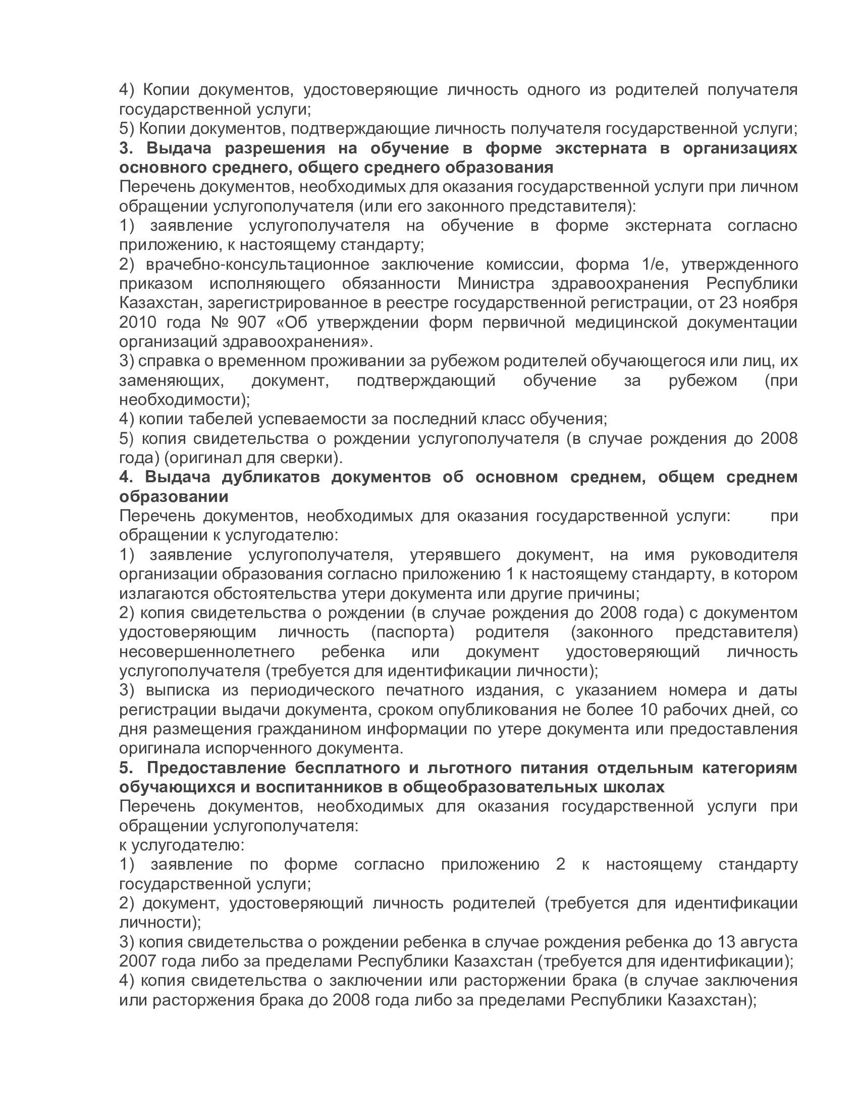 Стандарт государственной услуги «Выдача дубликатов документов об основном среднем, общем среднем образовании»