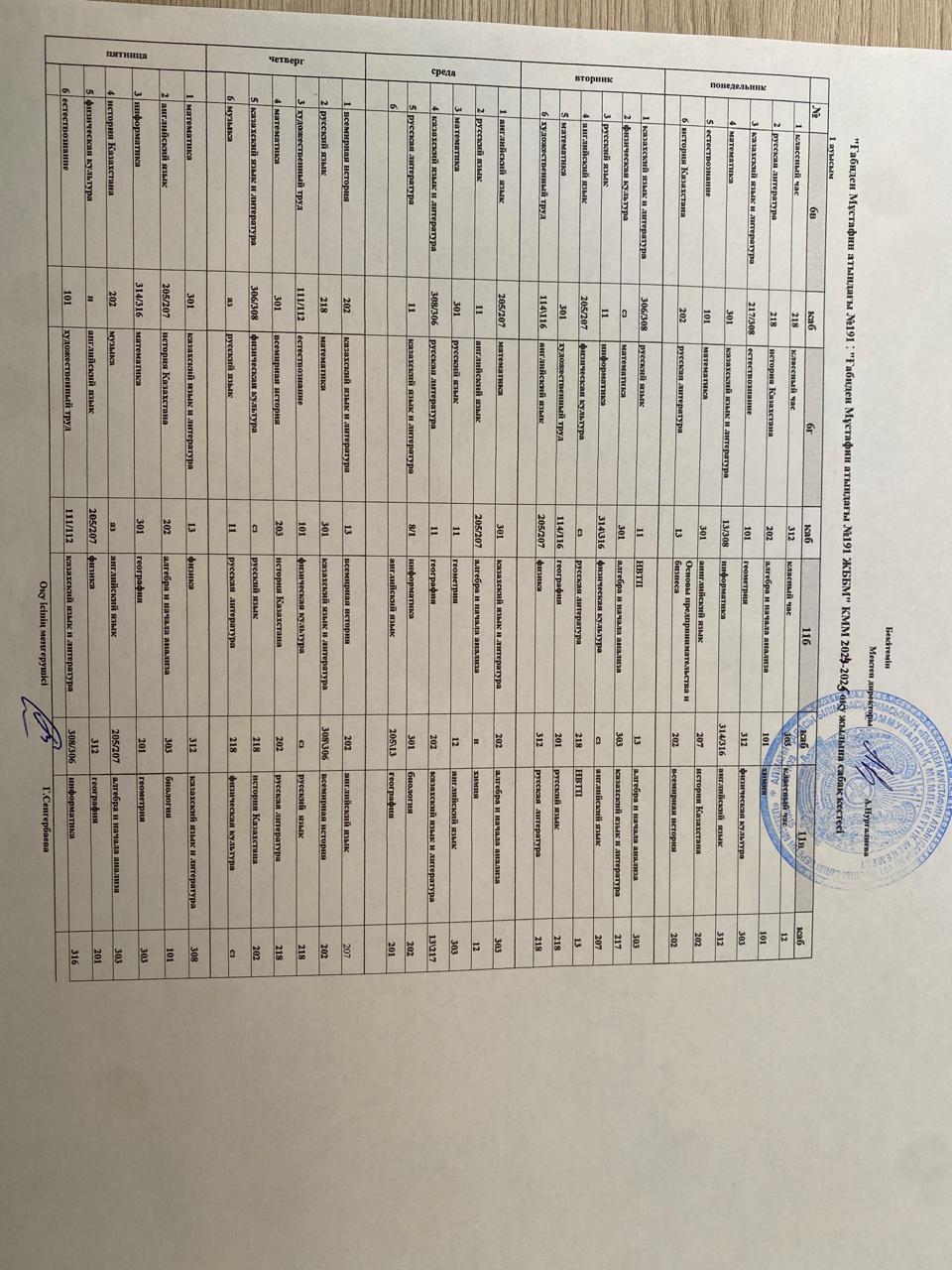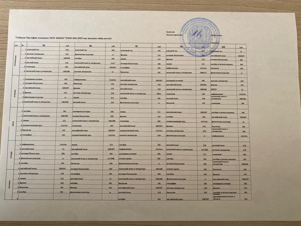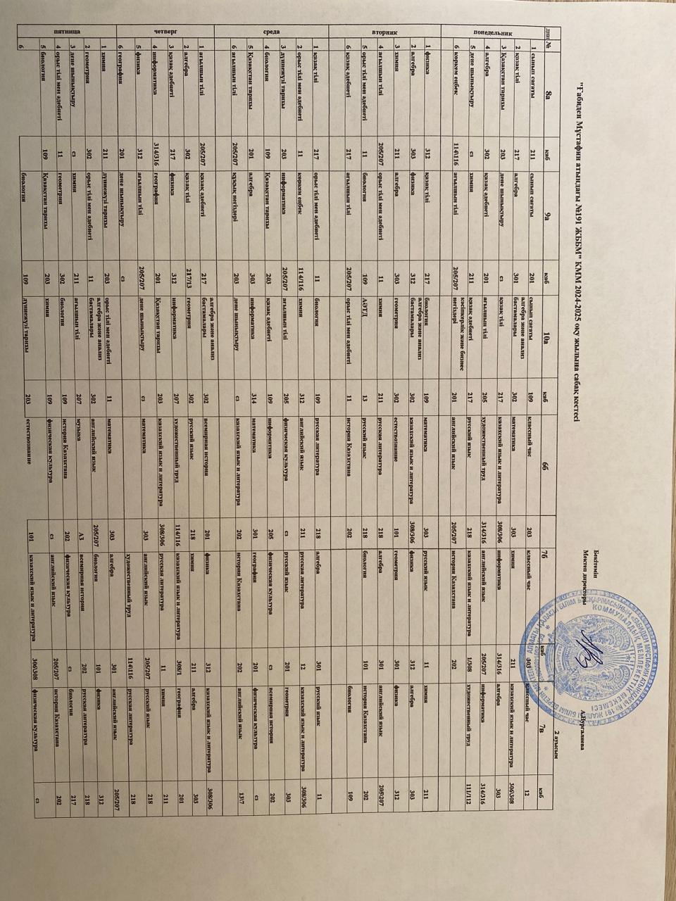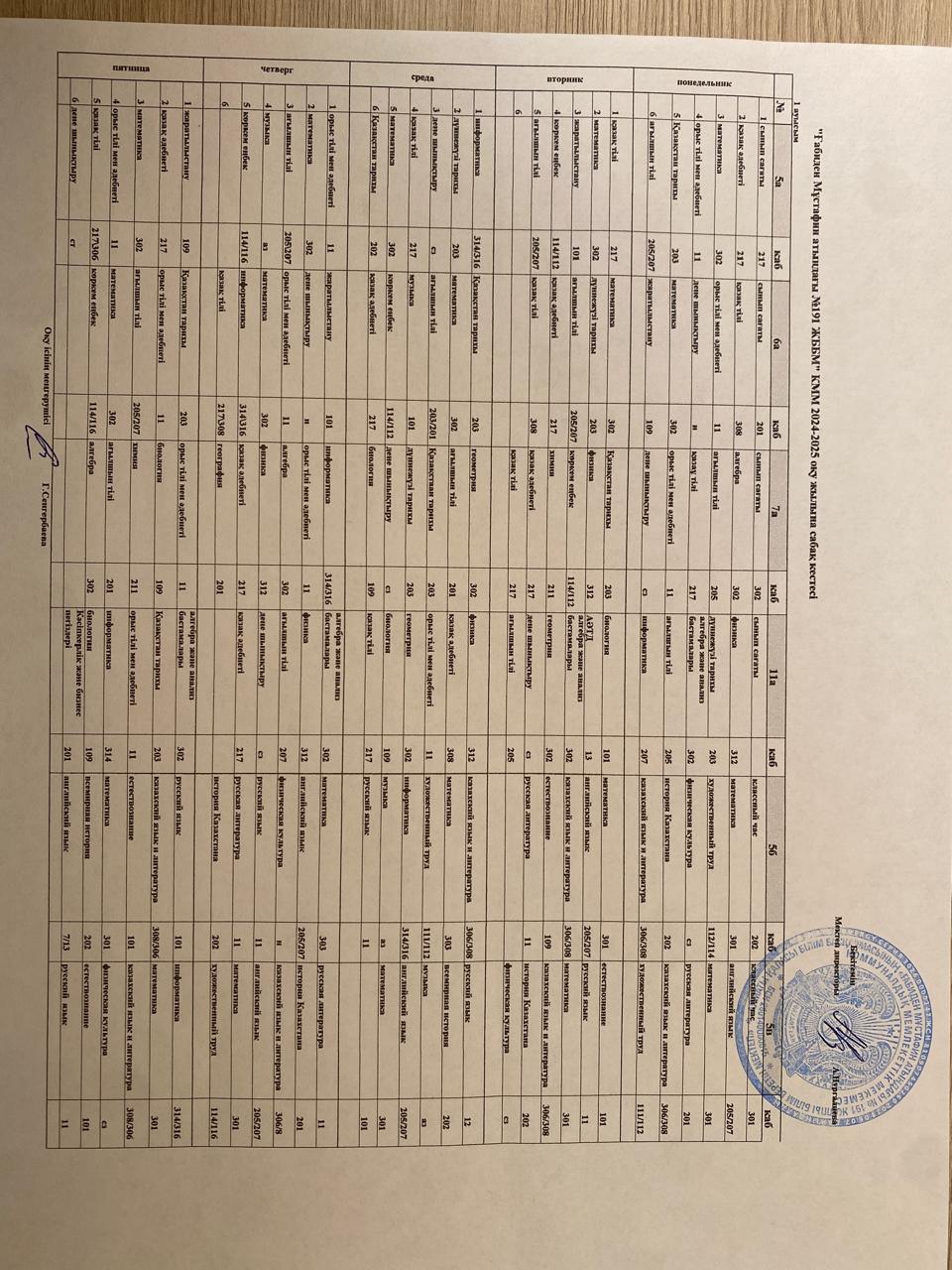 Сабақ кестесі 5-11 сынып 2024-2025 оқу жылы