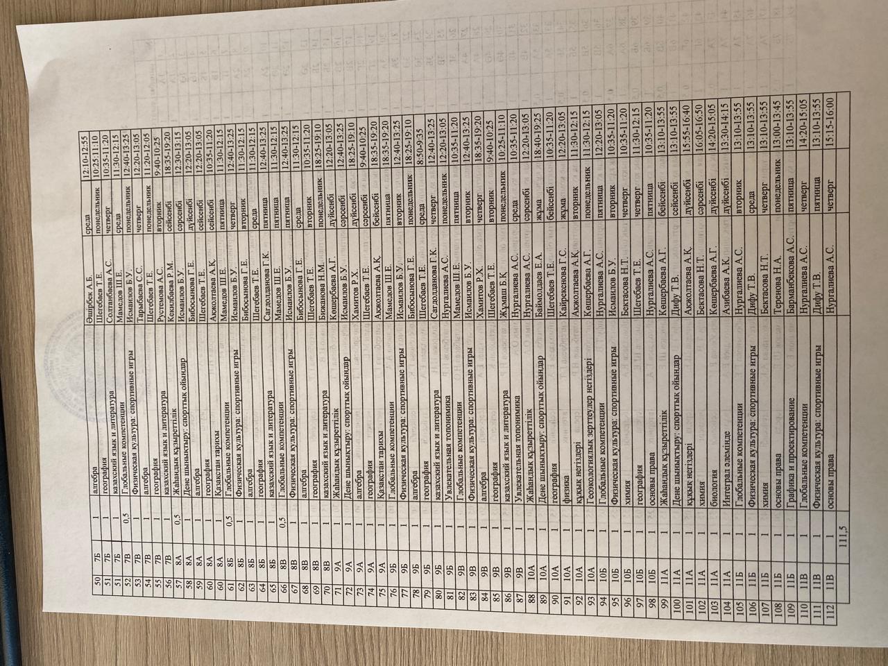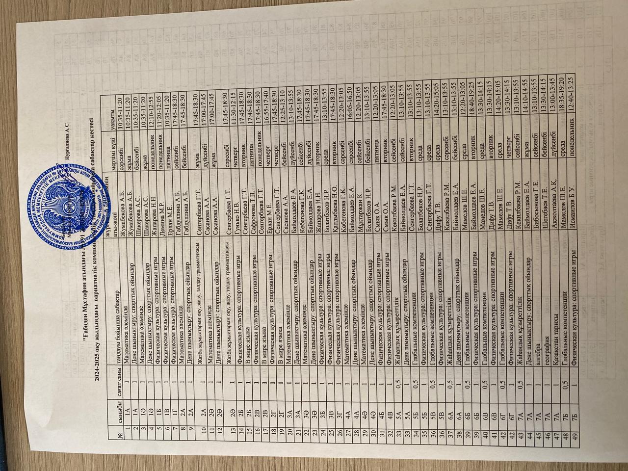 Сабақ кестесі 5-11 сынып 2024-2025 оқу жылы