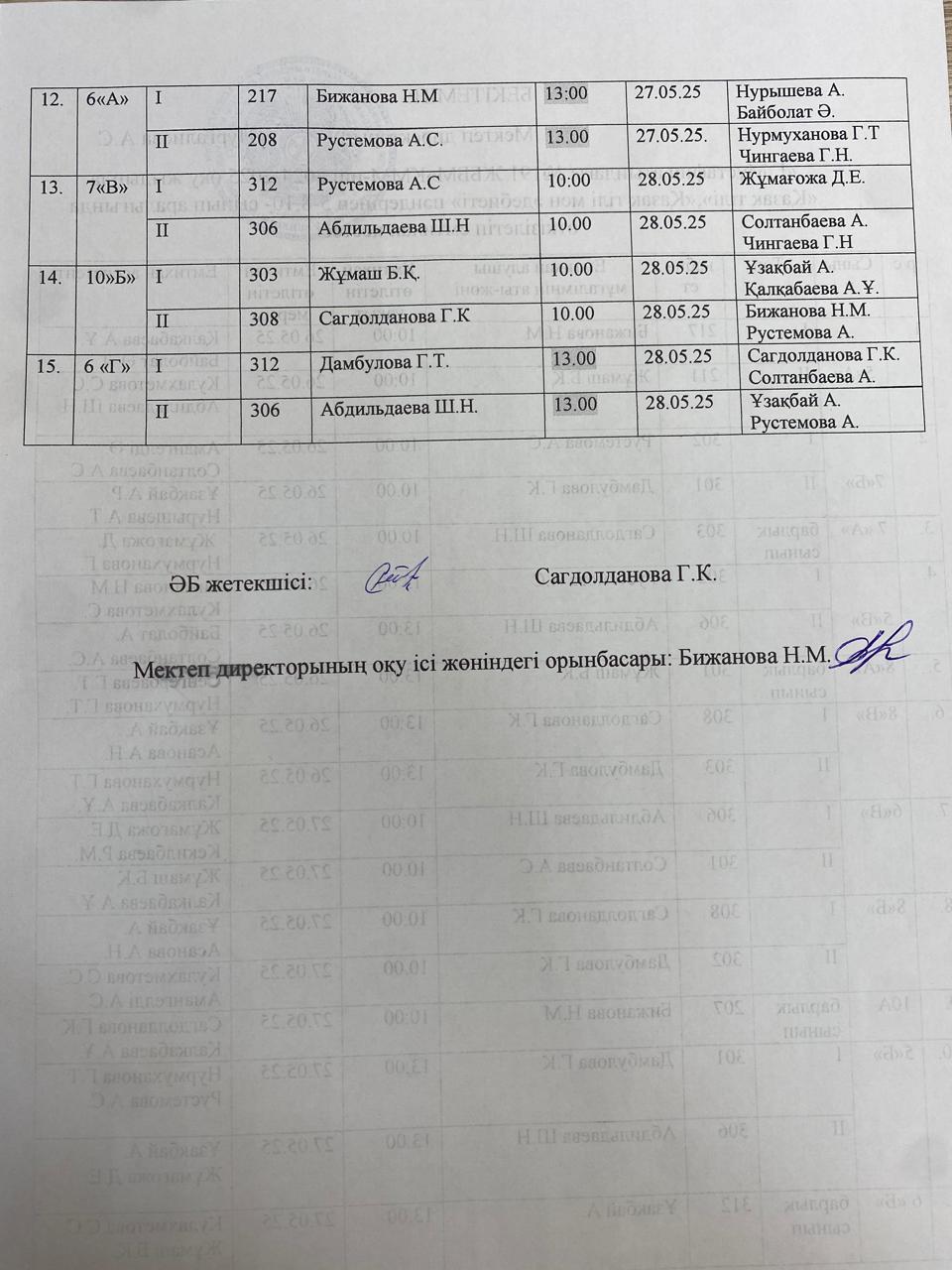 Қазақ тілі пәнінен 5-8,10 сынып аралығында өтетін емтихан кестесі