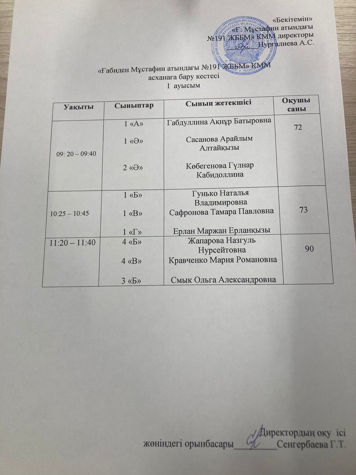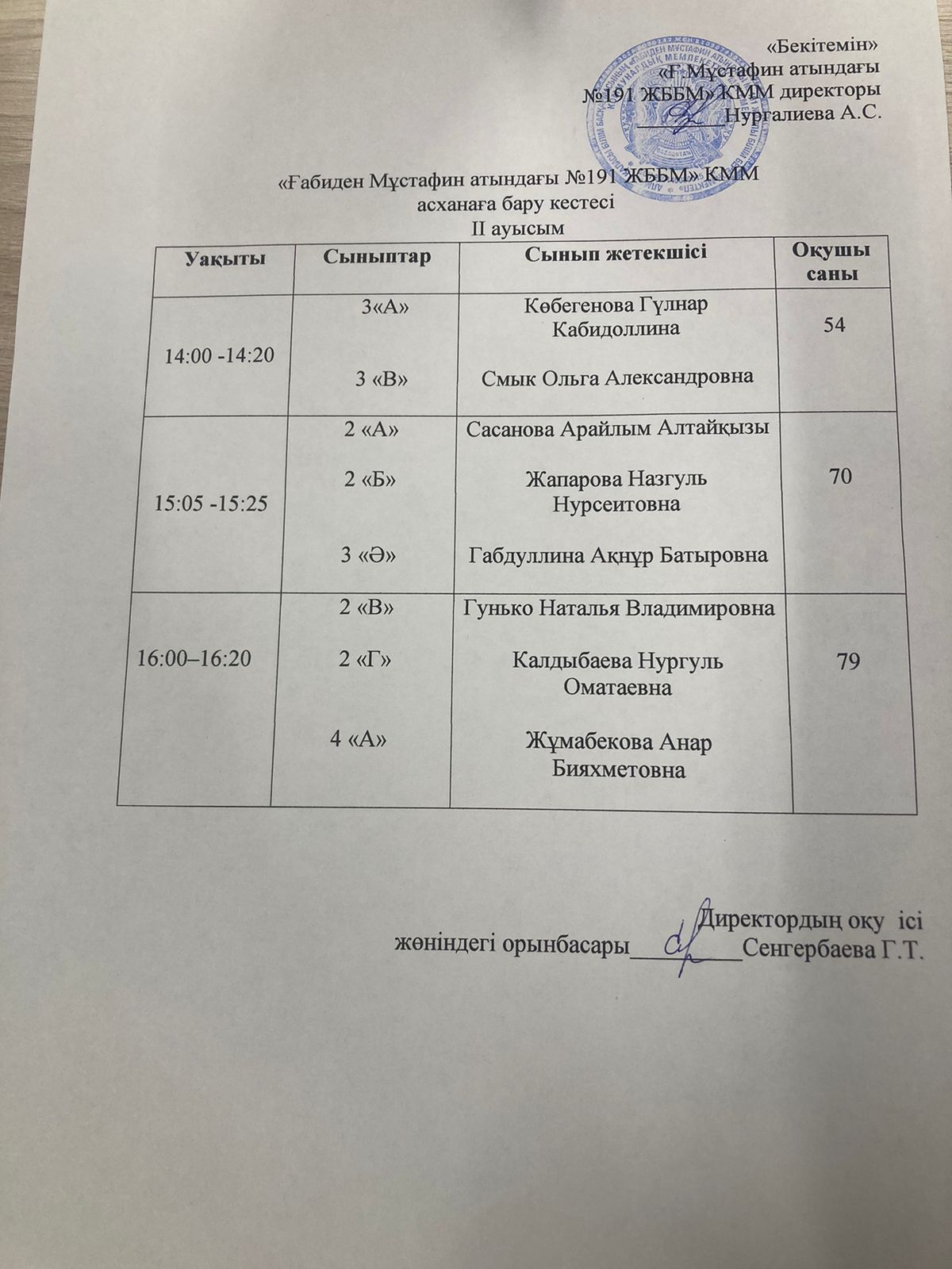 » Оқушылардың асханаға бару кезекшілігі І-ІІ ауысым