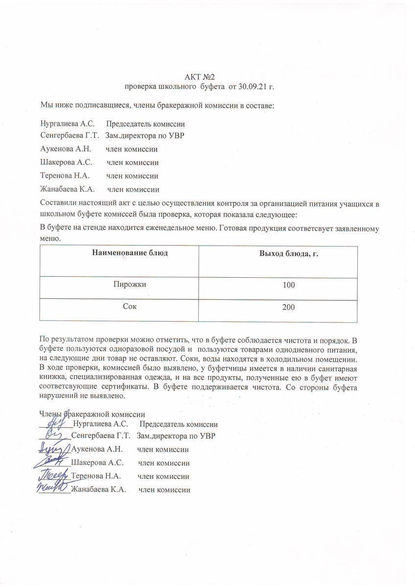 » Акт №2 проверки школьной столовой от 30.09.2021 г.