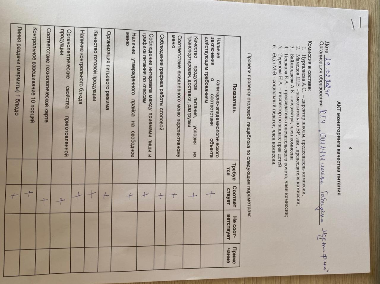 Отчет комиссии по мониторингу качества питания за 3 четверть