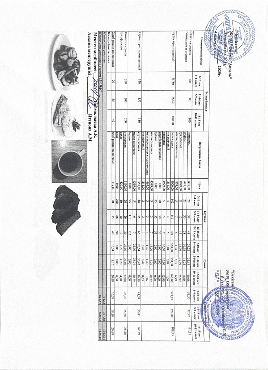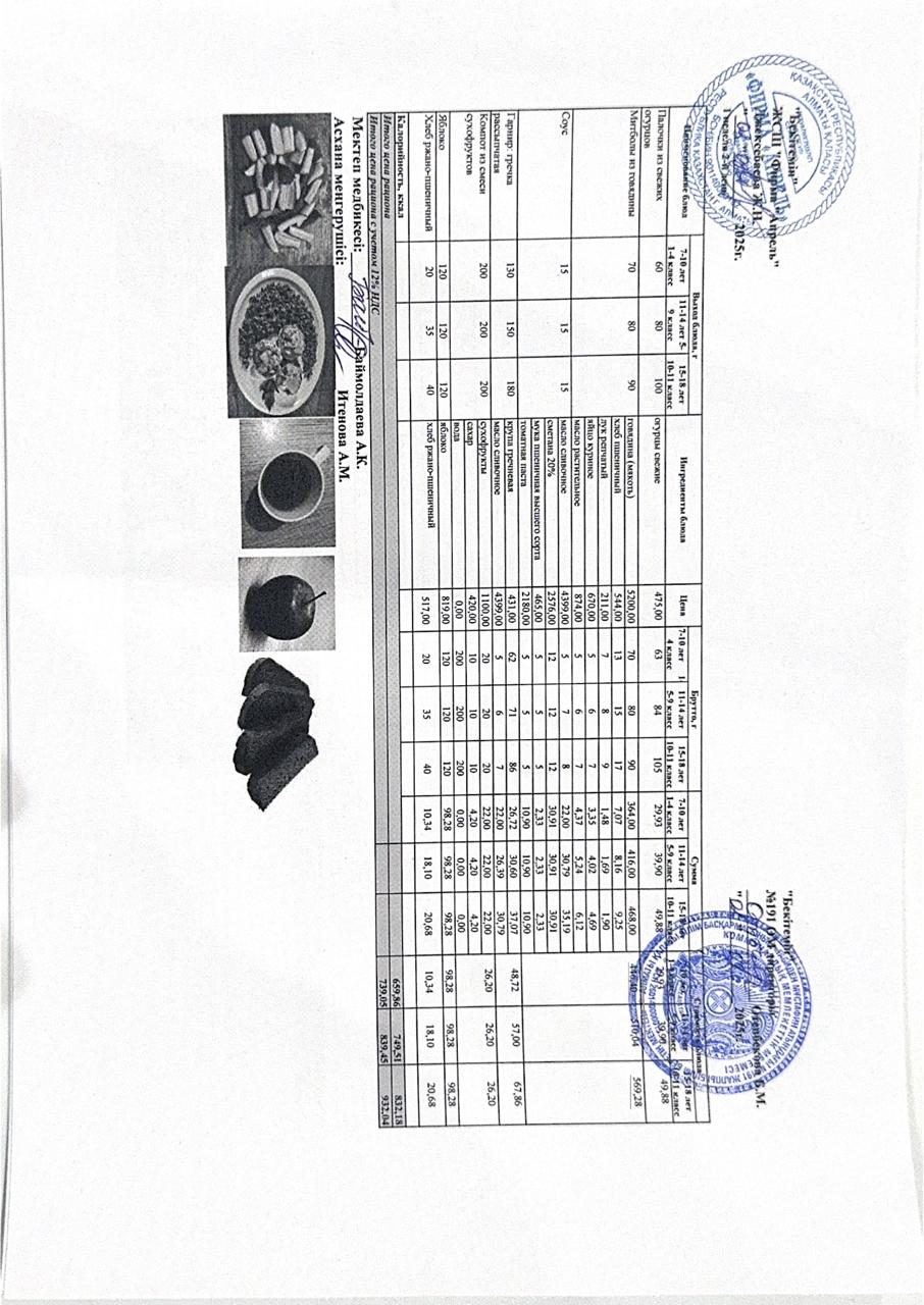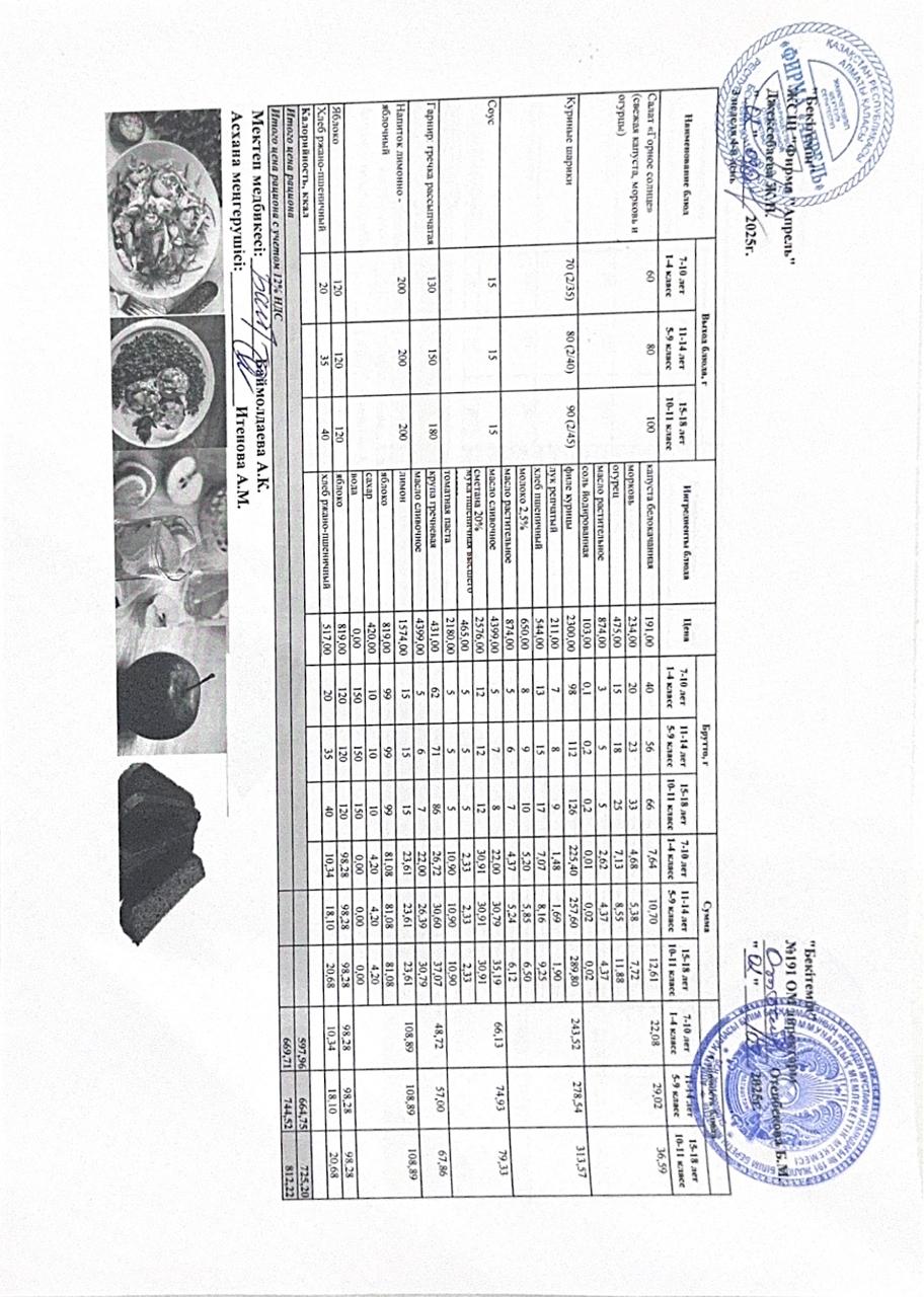 2025-2026 оқу жылындағы қыркүйек айының мәзірі
