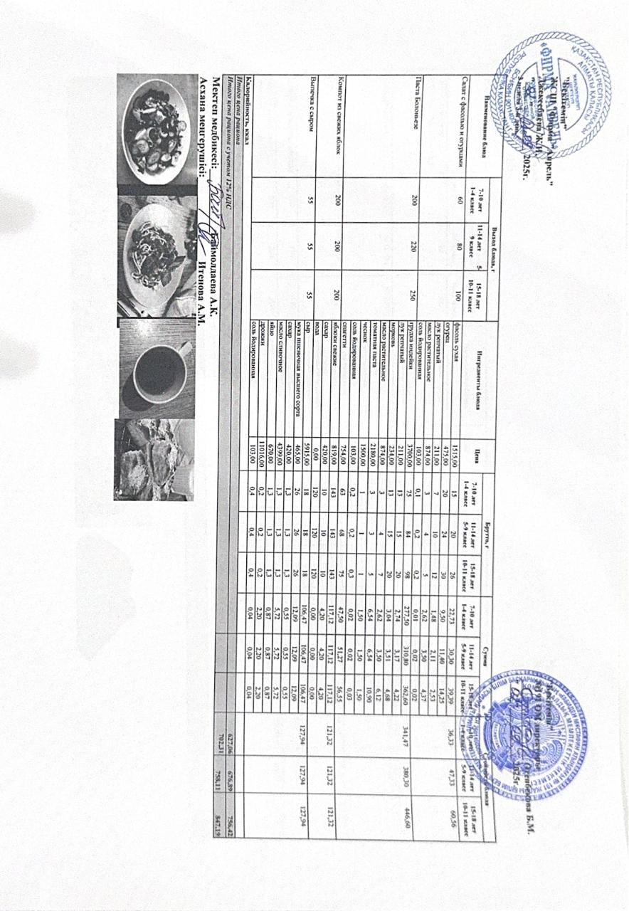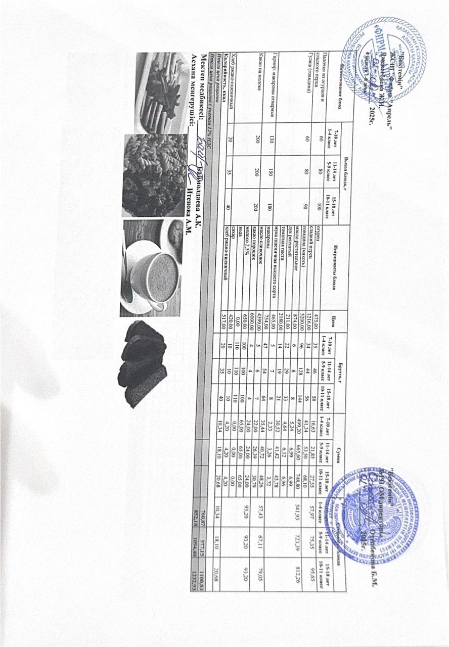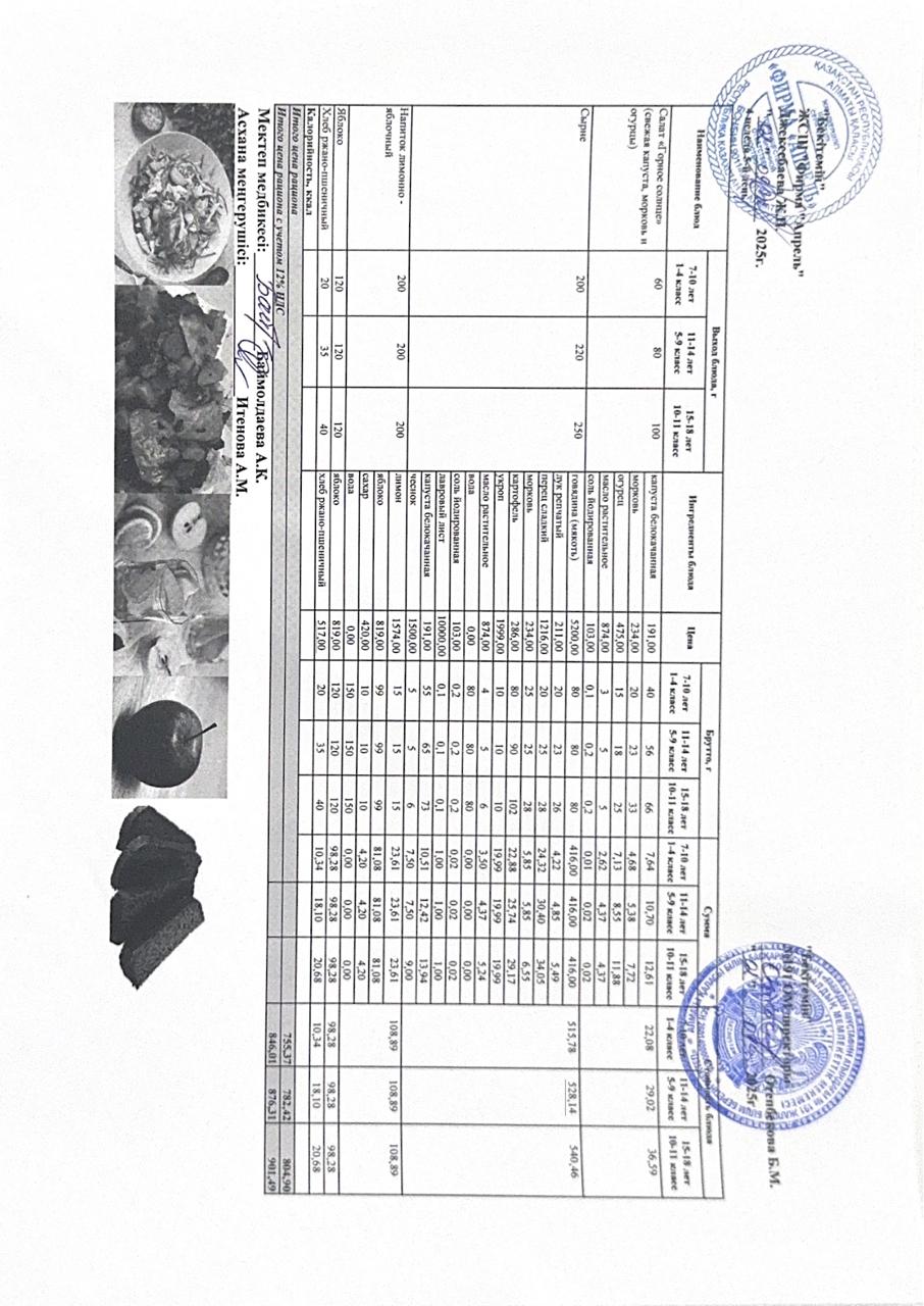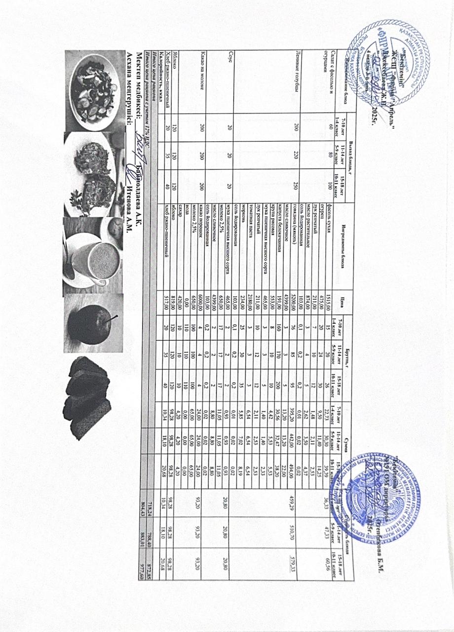 2025-2026 оқу жылындағы қыркүйек айының мәзірі