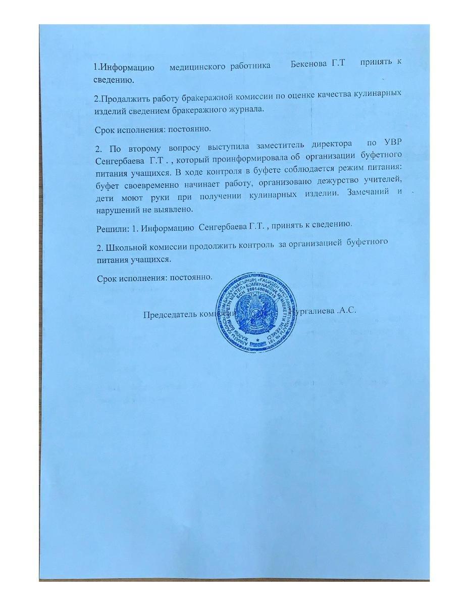 Протокол заседания комиссии по мониторингу за качеством питания
